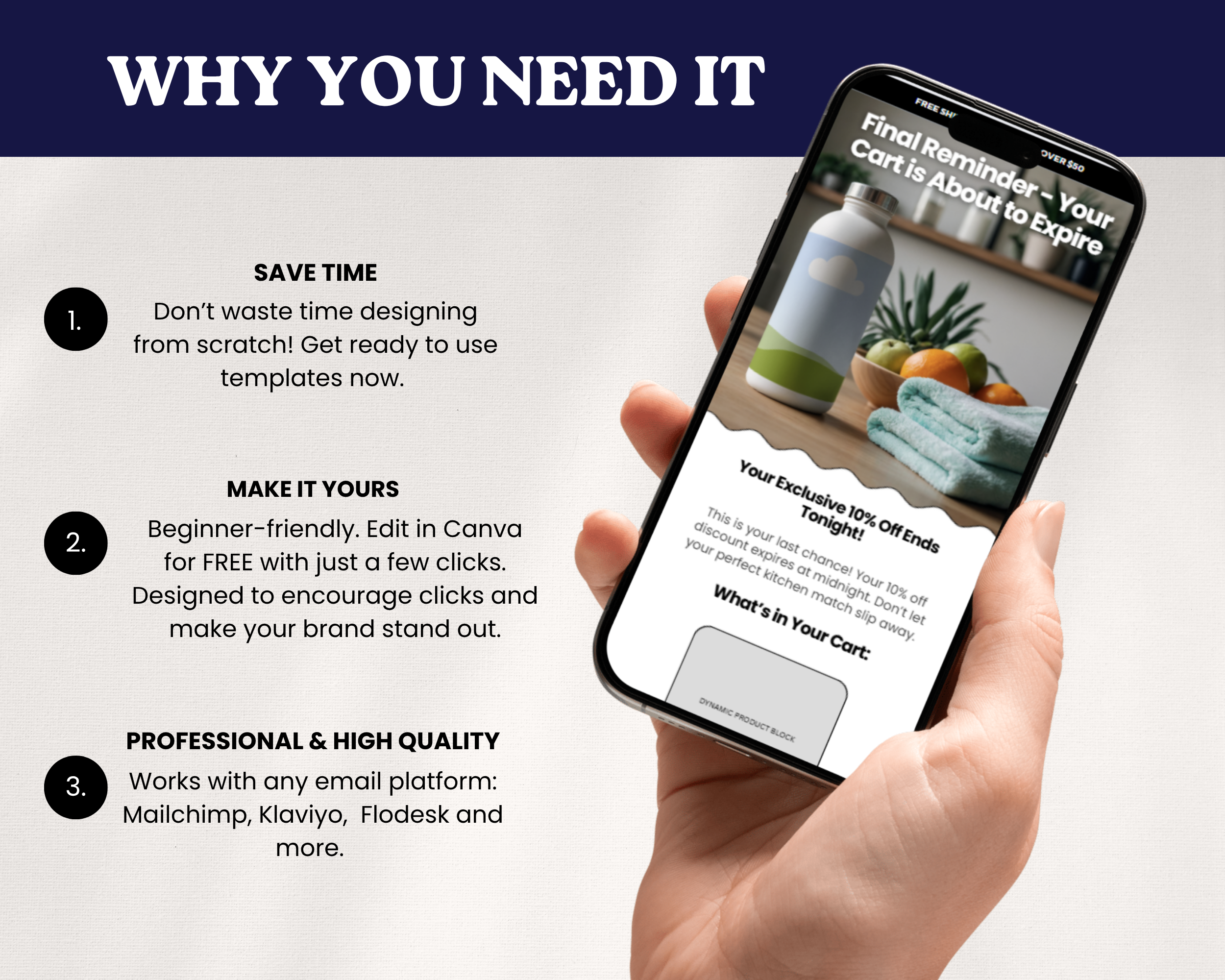 Add your templates to your email platform (Klaviyo, Mailchimp, Flodesk, and more) and start turning emails into revenue.