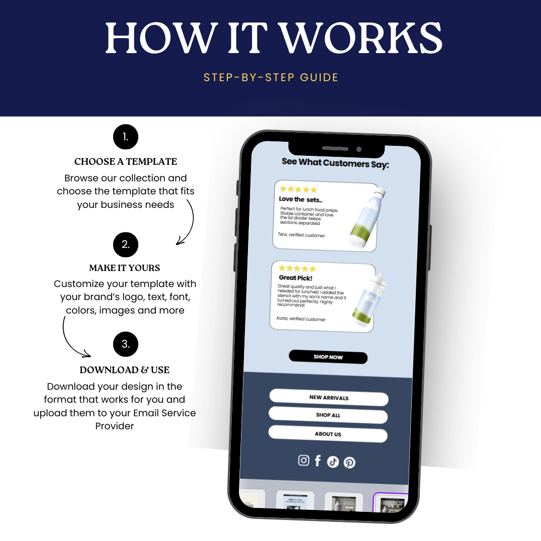 These templates work withany email platform, including Mailchimp, Klaviyo, Flodesk, and more. Simply customize in Canva and upload into your preferred platform.