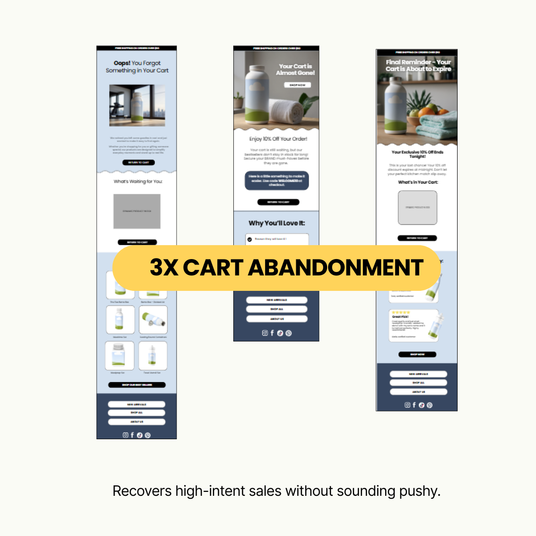 These 5 plug-and-play email flows are designed to capture missed opportunities, bring customers back, and turn your existing traffic into consistent revenue—on autopilot.